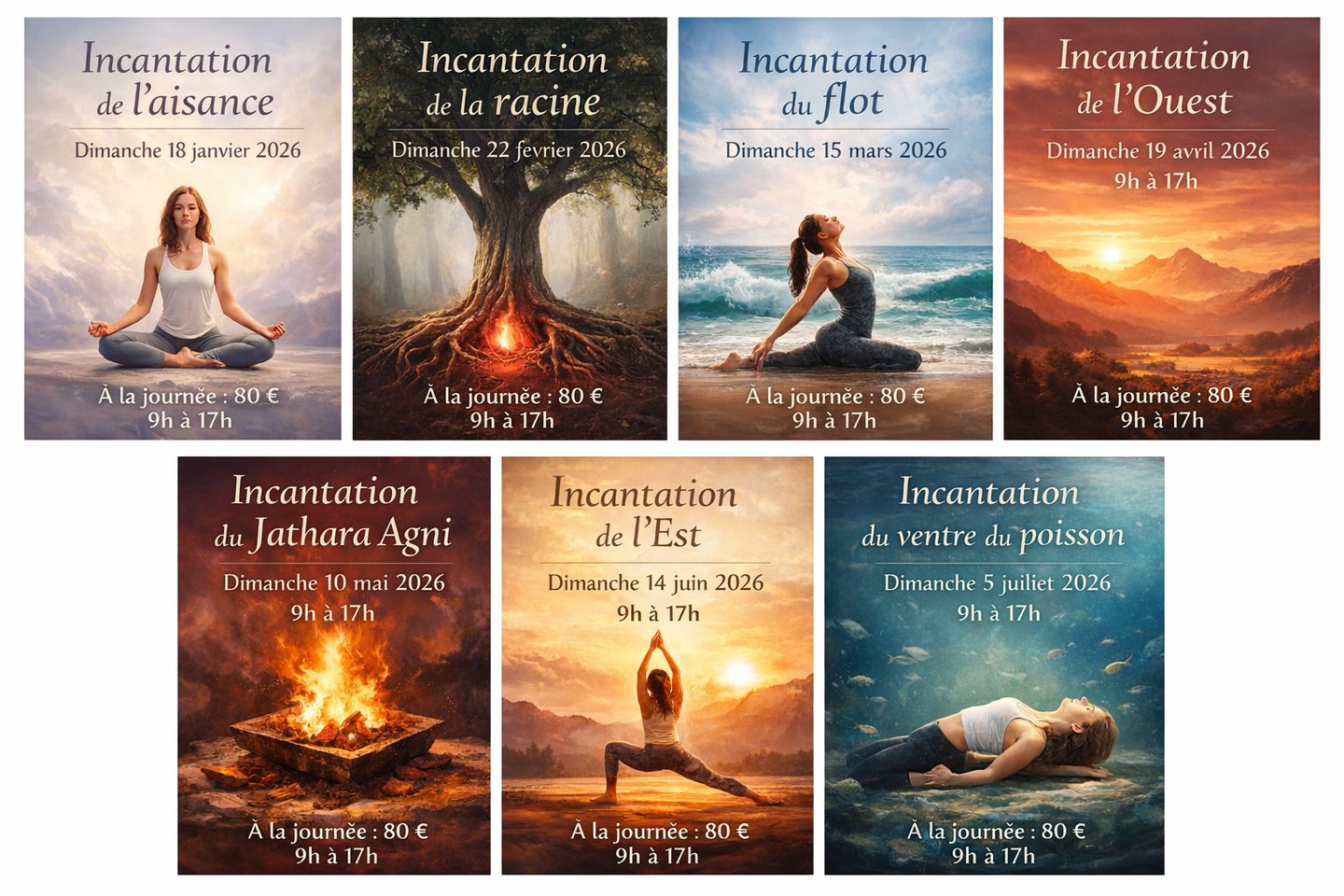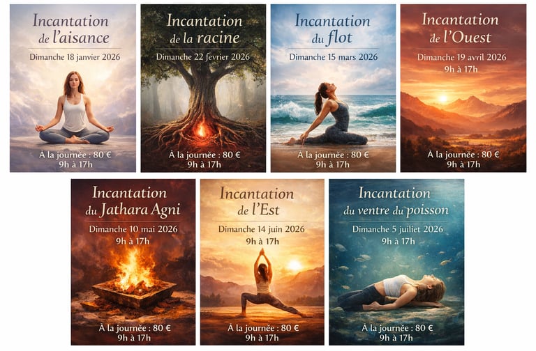 🌿 Ces ateliers forment un cursus cohérent et progressif, conçu comme une exploration approfondie des fondamentaux de la pratique. Chaque atelier aborde une famille essentielle de postures et les humeurs physiques, émotionnelles et énergétiques qu’elle déploie. Ensemble, ils constituent une cartographie vivante du yoga, permettant d’installer des bases solides, sensibles et durables. L’invitation n’est pas de venir « en touriste » pour passer un bon moment isolé, mais d’entrer dans un processus. Un processus qui se déploie sur l’année, en résonance avec les saisons, en complément des cours réguliers, et qui gagne en profondeur lorsqu’il est suivi étape par étape.